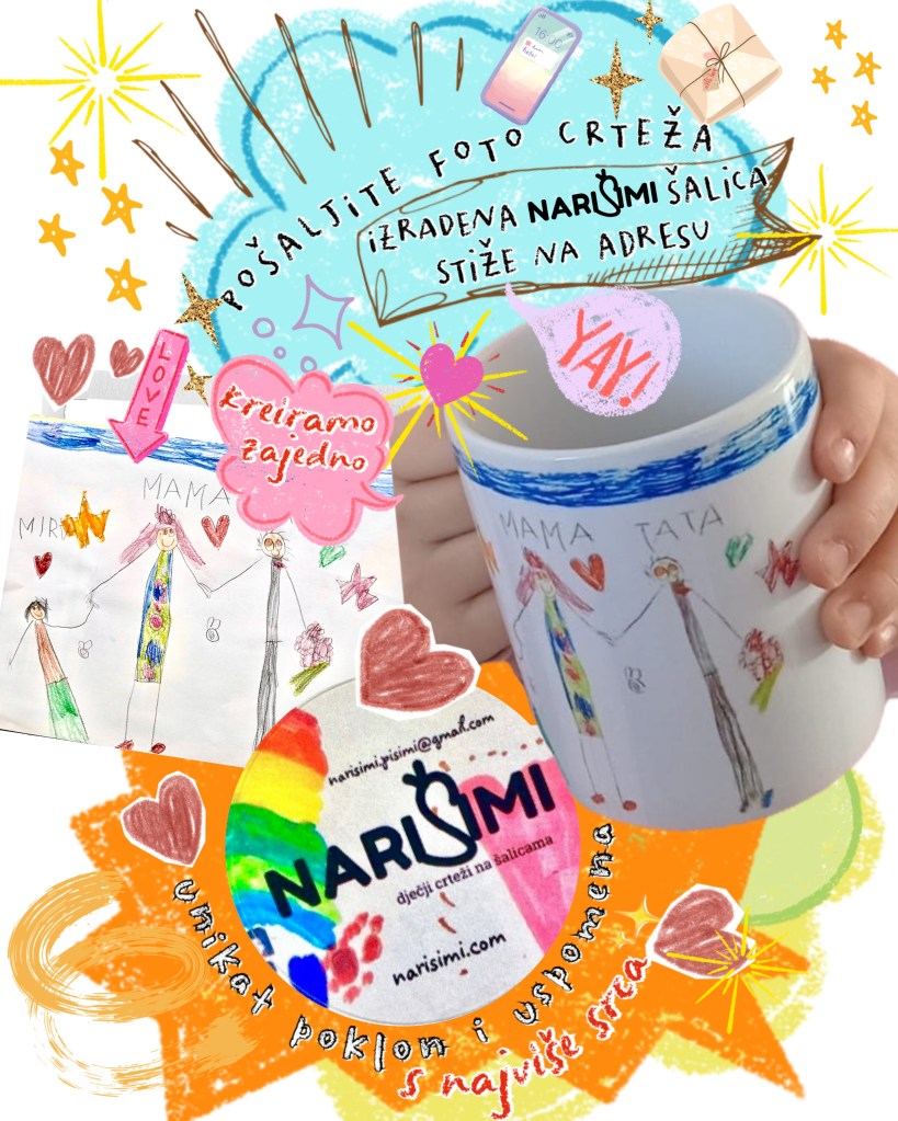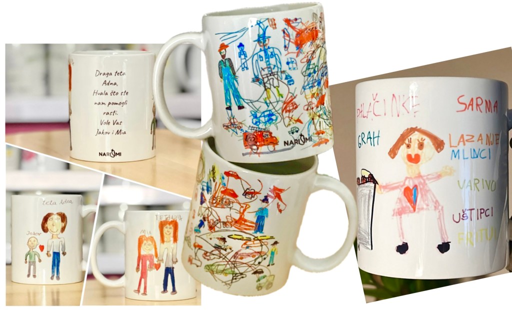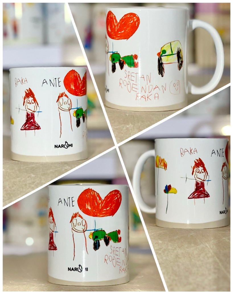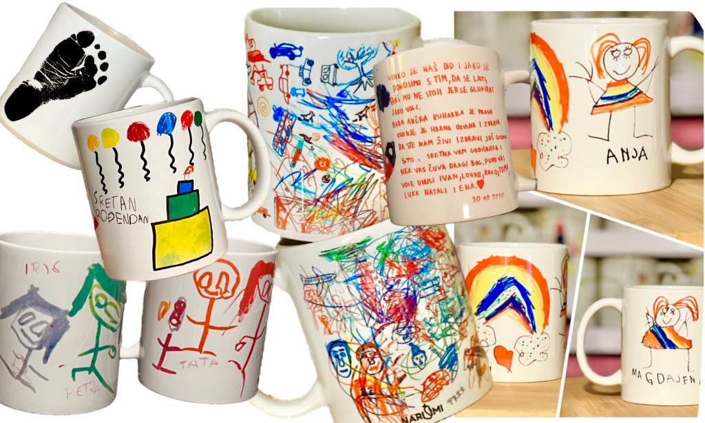 Svaku šalicu radim od slike crteža koje mi pošaljete i jedinstvena je, po narudžbi – samo za Vas – u broju primjeraka koji naručite i ne ide u daljnju prodaju, osim Vama.