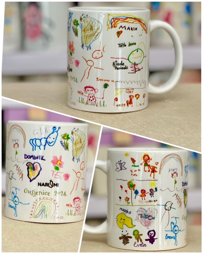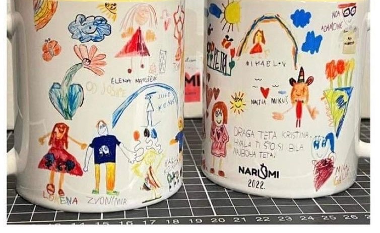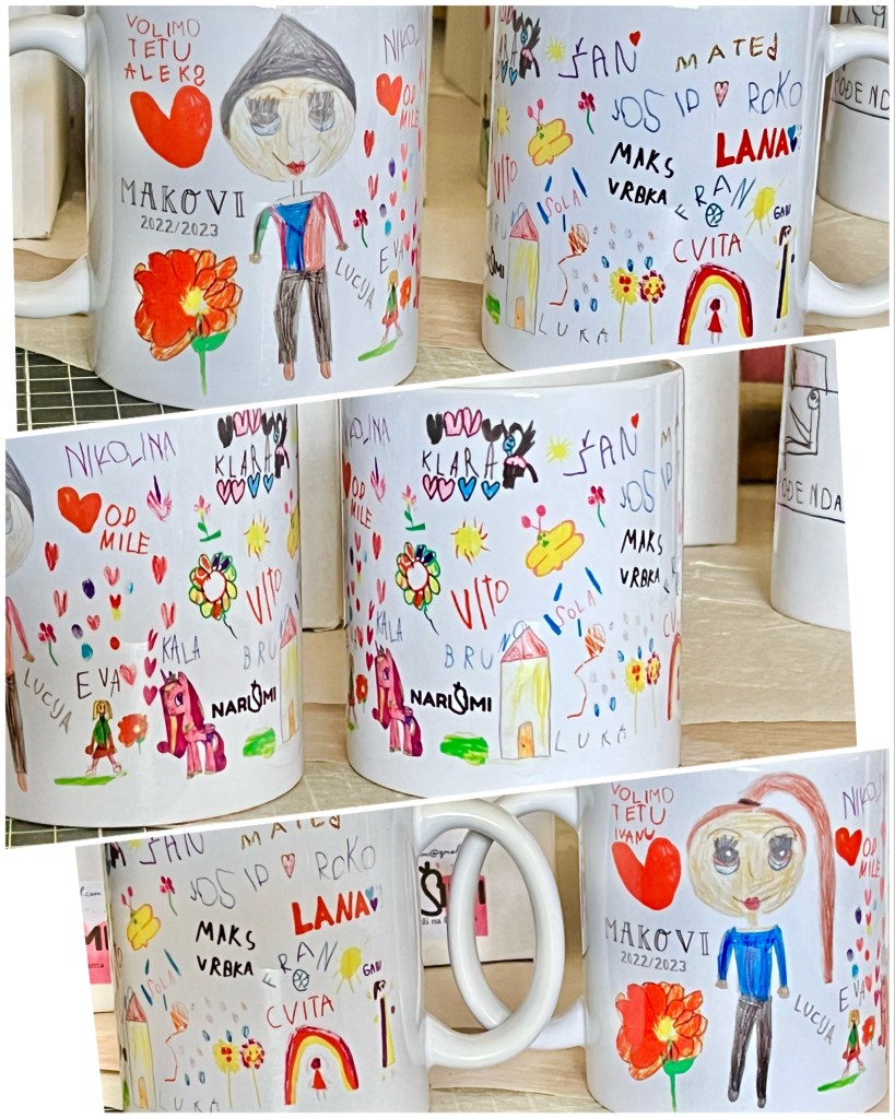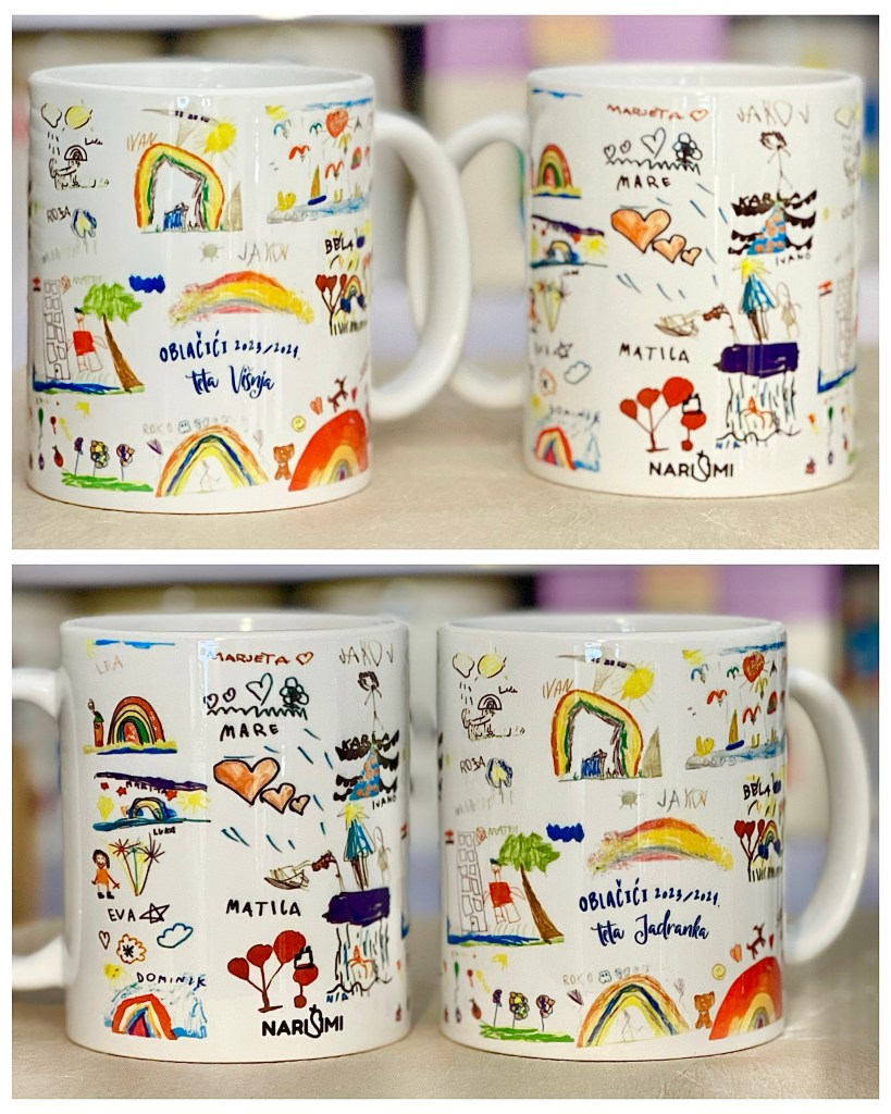 Kad NARIŠIMI šalicu s dječjim crtežima poklanja grupa djece svojim odgojiteljicama, učiteljicama, logopedicama, asistenticama ili sebi međusobno – za uspomenu, zahvalu ili bilo kojim lijepim povodom