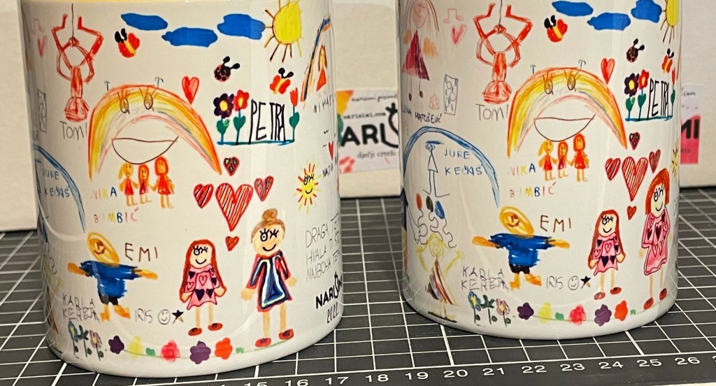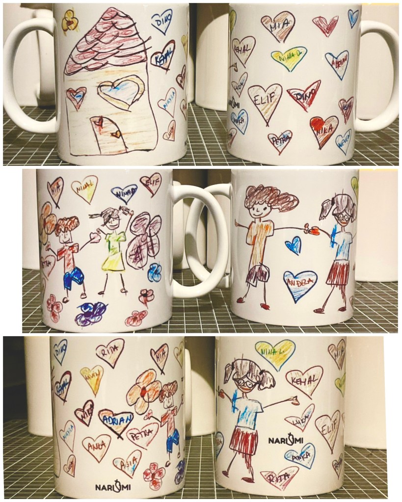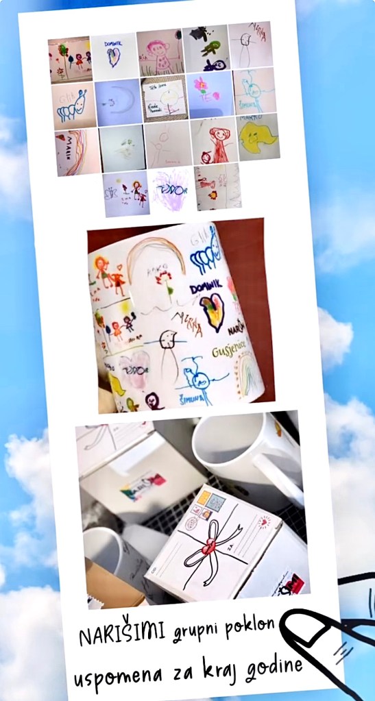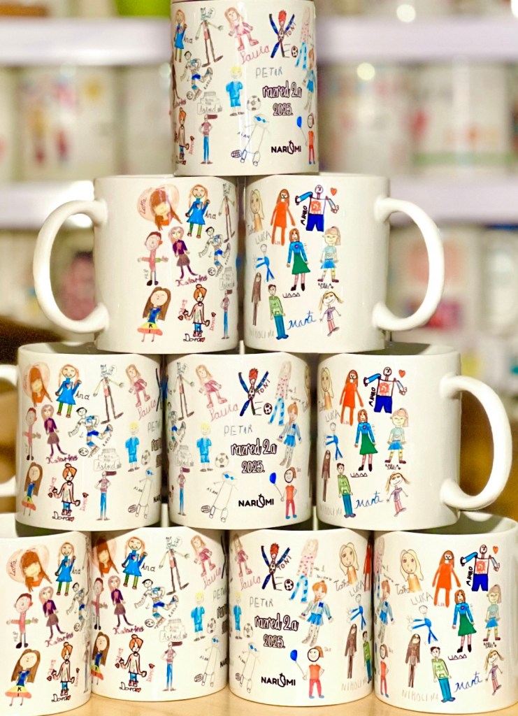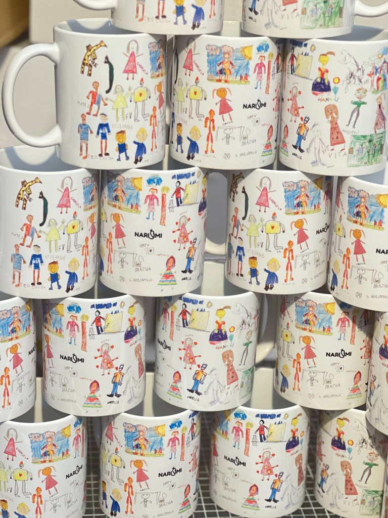 Kad NARIŠIMI šalicu s dječjim crtežima poklanja grupa djece svojim odgojiteljicama, učiteljicama, logopedicama, asistenticama ili sebi međusobno – za uspomenu, zahvalu ili bilo kojim lijepim povodom