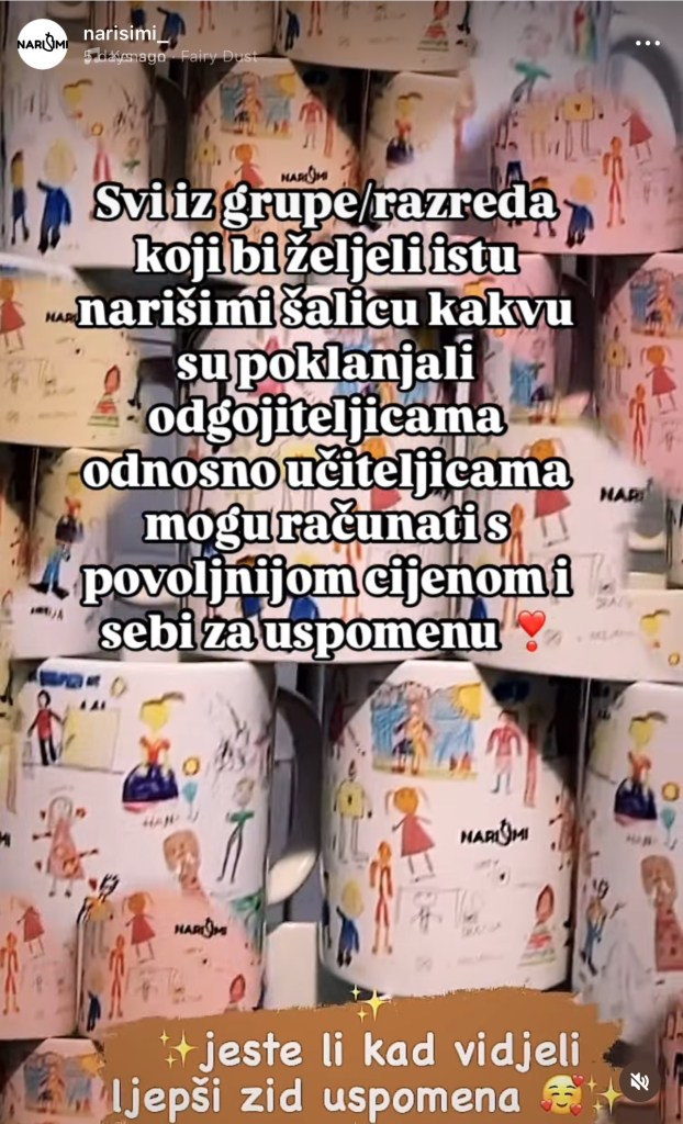 ✨uz NARIŠIMI šalice koje idu na poklon od grupe, dostupna je posebna povlaštena cijena svakom pojedinom djetetu iz grupe koje bi naknadno željelo imati dodatnu istu NARIŠIMI šalicu i sebi za uspomenu.✨