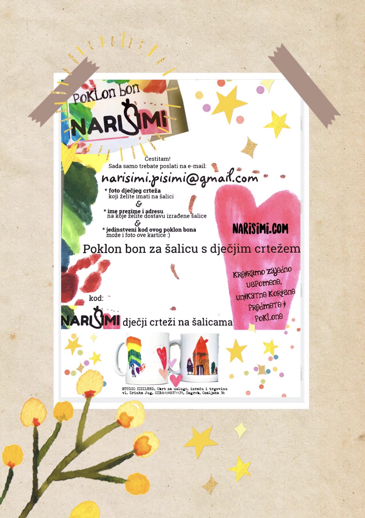 Kako razveseliti nekoga poklon bonom za NARIŠIMI šalicu s dječjim crtežem?
